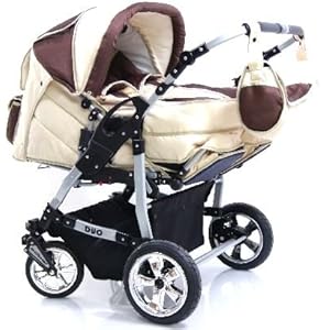 -Voir plus de details sur Poussette jumelle - multiplaces DUO 2 nacelles+2 couffins+2 sièges sport+roues PIVOTANTES- couleur: Nr.25 beige / marron